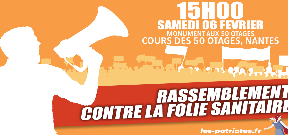 Nouveau rassemblement des Patriotes de Loire-Atlantique contre la dictature sanitaire, ce samedi 6 février, devant le Monument aux 50-Otages, face à la préfecture (entrée public), à 15 heures.